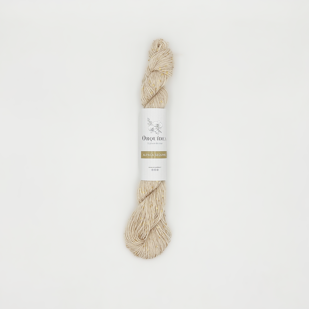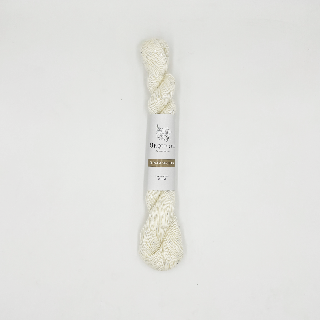 Alpaca Sequins llega para darle un toque mágico a tus proyectos. Su mezcla de alpaca (16%), merino (14%) y un delicado aporte de poliéster y lentejuelas crea una lana suave, ligera y lleno de destellos.