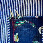 Este bolso trae la magia del block print tradicional de la India a tus proyectos de tejido. Es amplio, resistente y liviano: perfecto para llevar tus lanas, avances y cuadernos de notas donde vayas.